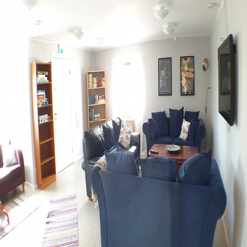 Hos oss finns ett välutrustat kök, 6 duschar (3 för respektive kön) & 8 toaletter som delas mellan gästerna. Självklart har du tillgång till kyl och frys om du behöver det. Dessutom finns två vardagsrum med tv och brädspel. Utomhus finns en terrass med kolgrill samt en uteplats där det finns en eldplats.